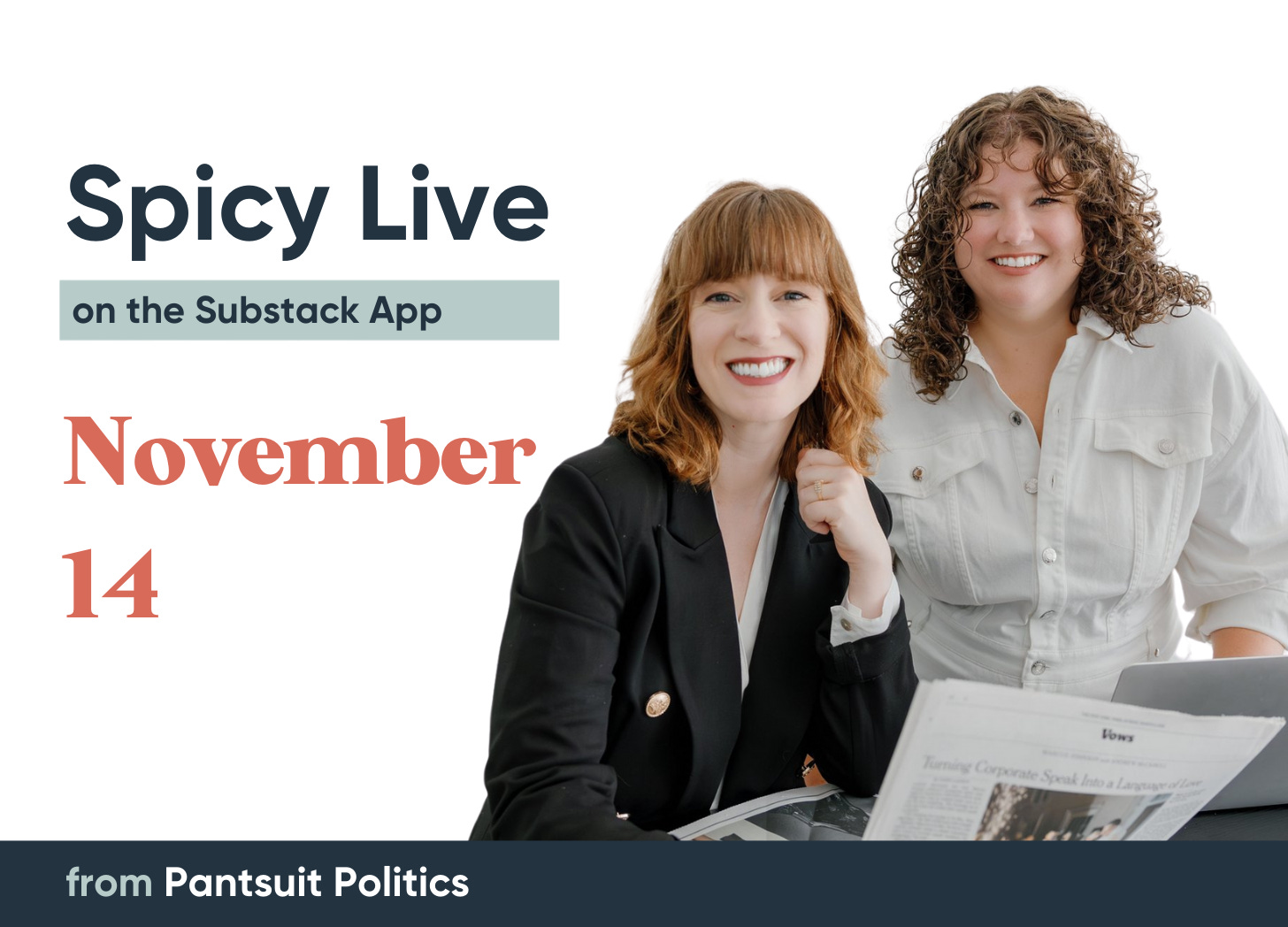 We’re excited to be with you LIVE tonight for our first official Spicy Live on Substack! (let’s not count Election Night - those were not Spicy Live vibes 😬)